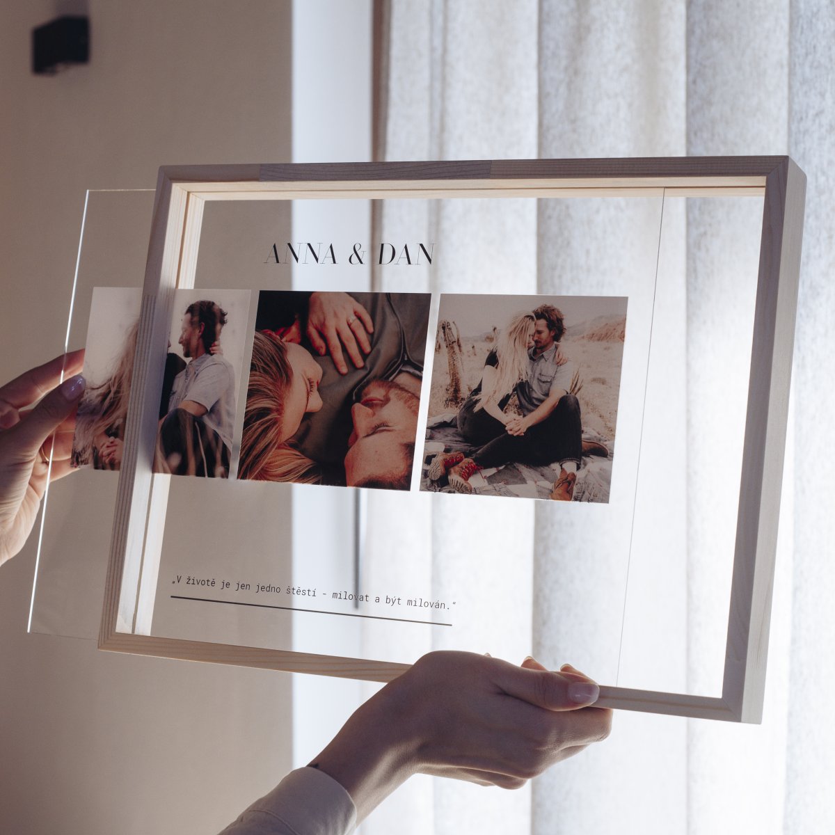 Hledáš fotodárek, který zaujme? Vytvoř fotoobraz na plexiskle s vlastní fotkou. A co víc? Můžeš také doplnit text podle představ. U dárku se nabízí věnování, oblíbený citát nebo třeba datum výročí. Plexisklo pak můžeš darovat spolu s dřevěným rámem, nebo v dřevěném stojánku, aby bylo připraveno k vystavení.