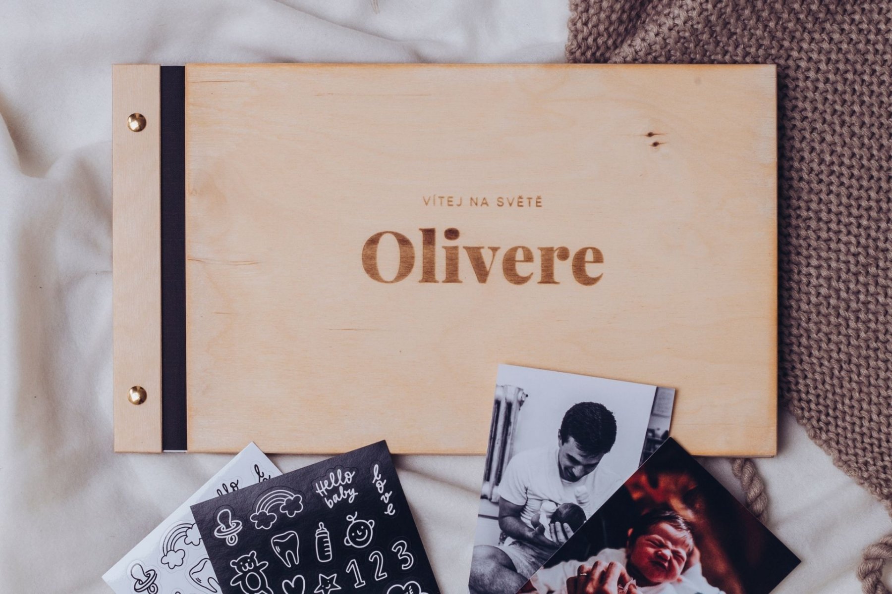 Nech si vyrobit dřevěné album se jménem a datem narození miminka a pusť se do jeho tvorby. Můžeš vlepovat fotky, psát krátké texty, kreslit….zkrátka zaznamenat všechny vzpomínky a dojmy libovolným způsobem. Prázdné fotoalbum je také skvělým dárkem pro všechny novopečené maminky.