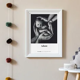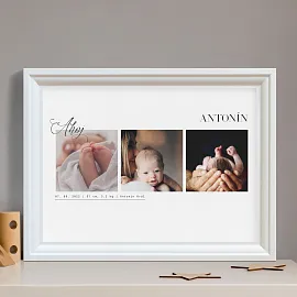 Vytvoř designový plakát jako vzpomínku na narození miminka. Perfektně se hodí k vystavení do dětského pokojíčku, ale i jako překvapení pro prarodiče.